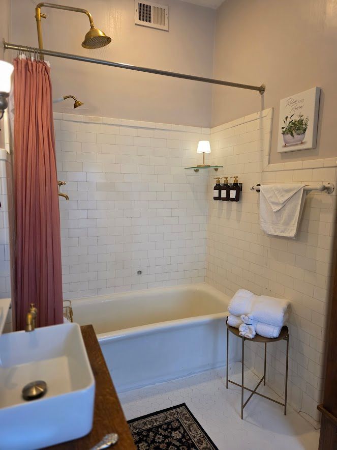 Step into luxury in The Reynolds Room, honoring the legacy of the house's original owners. Unwind in style with a private bath boasting a soothing rainfall shower, perfect for rejuvenation after a long day of exploration. Embrace restful nights with blackout curtains ensuring uninterrupted sleep, while a queen-size bed invites you to sink into comfort. Experience the perfect blend of heritage and modern comfort in The Reynolds Room—a haven where relaxation meets elegance.